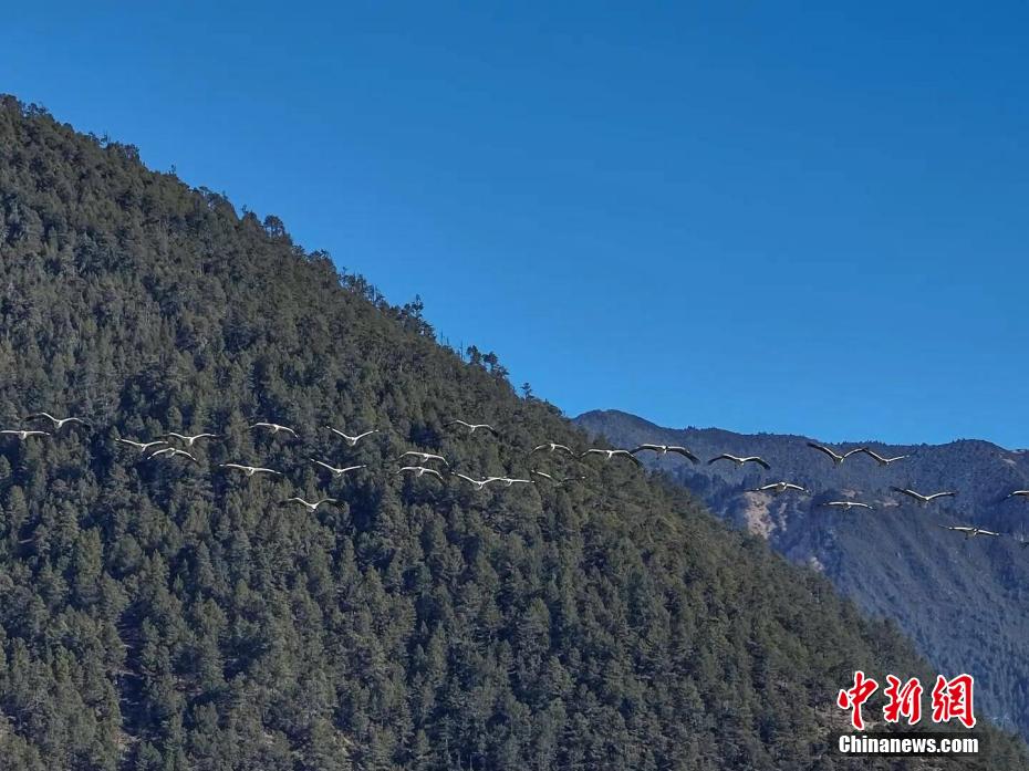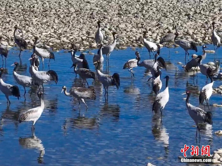西藏米林迎來(lái)大批黑頸鶴越冬