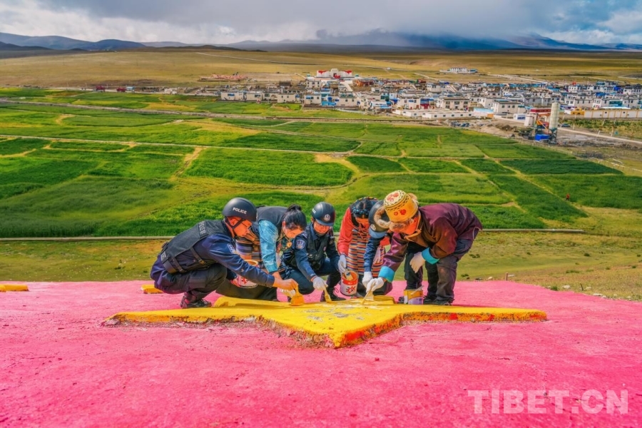 中國(guó)西藏網(wǎng)訊 國(guó)慶節(jié)前夕,西藏邊檢總站日喀則邊境管理支隊(duì)崗巴邊境派出所民警攜手轄區(qū)群眾,共赴中印邊境吉汝村為國(guó)旗和黨旗描紅,以行動(dòng)獻(xiàn)禮國(guó)慶。(中國(guó)西藏網(wǎng) 通訊員/葉軼 記者/趙振宇)