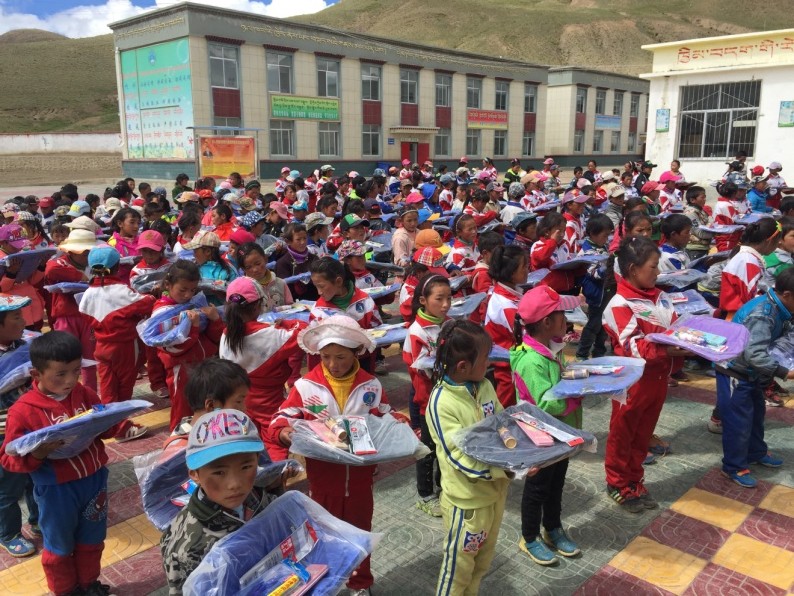 9月,也是村里孩子們開心的時刻。352份價值2萬余元的書包、文具、畫筆等慈善捐贈物資,從成都運抵千里之外的浪卡子縣倫布雪鄉(xiāng)。為了節(jié)約運費,我和隊友一起把貨物搬到車上,運回了村里,整齊地擺在了每一個學生的課桌上。孩子們用小手輕輕地撫摸著嶄新漂亮的書包和文具,歌聲笑聲回蕩在羊湖雪山之間。
