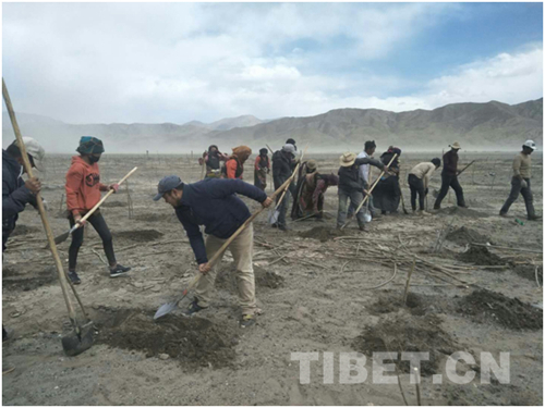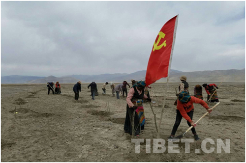中國西藏網(wǎng)訊 仲春初四日,春色正中分。春天的拉薩河谷,萬物復(fù)蘇。在全民義務(wù)植樹的三月時節(jié),拉孜縣扎西崗鄉(xiāng)吉榮村路旁的沙地上,吉榮村駐村工作隊正在組織村民進行義務(wù)植樹,轟鳴的機器聲和歡快的勞動號子,驚醒了農(nóng)田里前來越冬的各類候鳥。