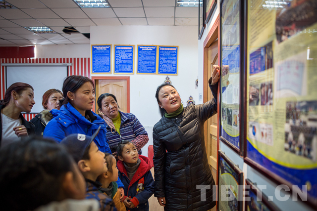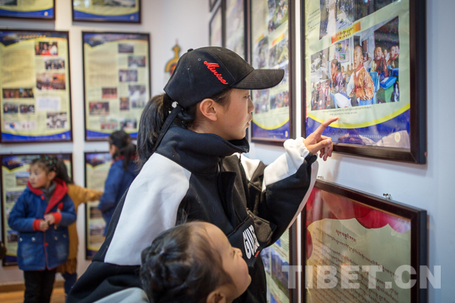 人群中,居民瓊吉正在給女兒旦增央吉講解圖片上的內(nèi)容。雖然旦增央吉還不太理解,但是瓊吉說:“現(xiàn)在孩子才上小學一年級,對于圖片內(nèi)容還不太懂,但是通過從小教育,帶孩子來看看這些東西,能讓孩子漸漸在心里形成深刻印象,等到她長大了就明白了,我們今天美好生活、寬敞的教室,舒適的學習環(huán)境的來之不易,讓孩子牢記歷史,珍惜生活。”