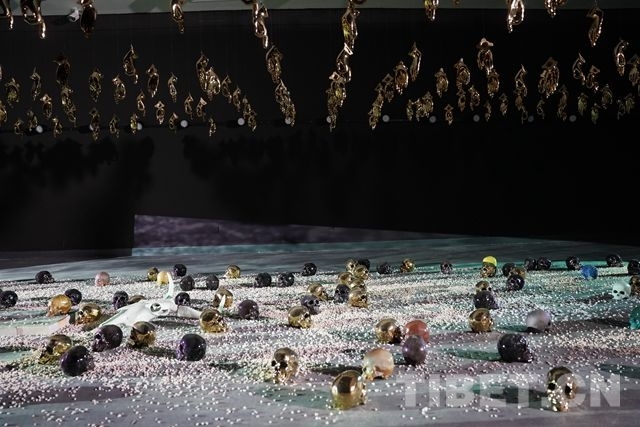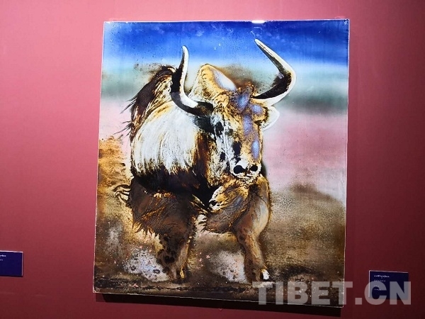 18日當(dāng)天,來自江西景德鎮(zhèn)的陶瓷藝術(shù)家李泉舉辦的“瓷@慈”當(dāng)代藝術(shù)展也在牦牛博物館開幕。展覽以45幅高溫顏色釉作品和一組500多個(gè)小件構(gòu)成的裝置藝術(shù)表現(xiàn)西藏的山川和人文?!吧晕鞑?,慈愛高原,此次展覽完成了我很久以來的心愿,表達(dá)了自己對西藏高原和藏族人民的理解與認(rèn)識”,李泉說。