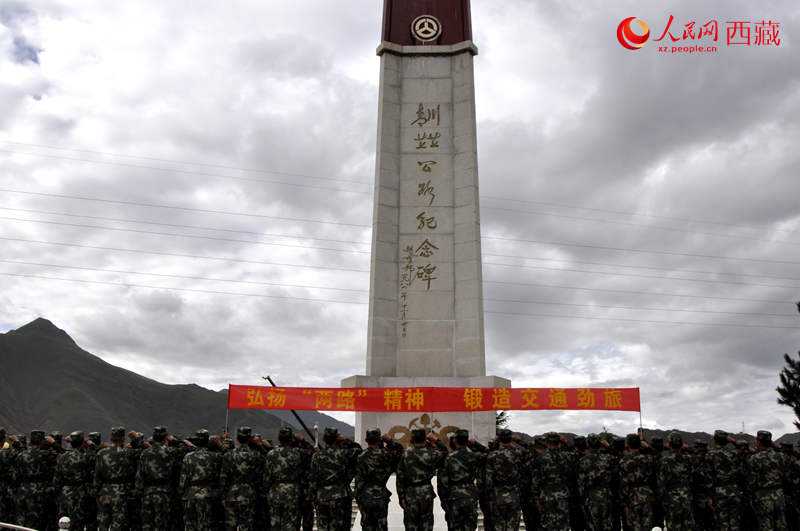 圖為2014年8月9日,武警交通官兵在位于拉薩的川藏青藏公路紀(jì)念碑前宣誓,紀(jì)念川藏青藏公路通車(chē)60周年。圖片來(lái)源:人民網(wǎng)
