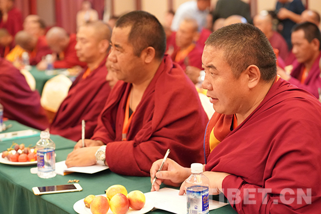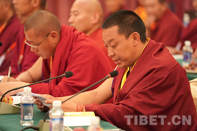 圖為山南市佛教協(xié)會會長達娃次仁發(fā)言。攝影:王淑