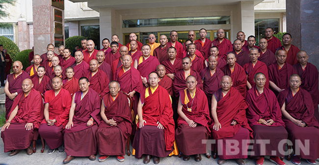 圖為十一世班禪與參加座談會的山南市宗教界代表人士合影。攝影:王淑