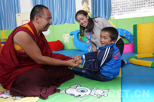 “喜歡這份工作嗎?”“愿意做這份工作嗎?”在康復(fù)區(qū)參觀調(diào)研時(shí),十一世班禪仔細(xì)詢(xún)問(wèn)老師們的工作情況并對(duì)他們說(shuō):“你們?cè)谶@里為這些殘障的孩子奉獻(xiàn),很了不起,向你們致敬?!?/p>