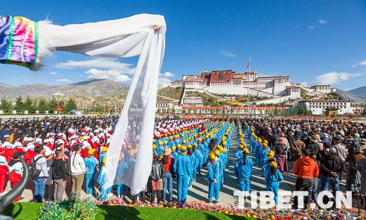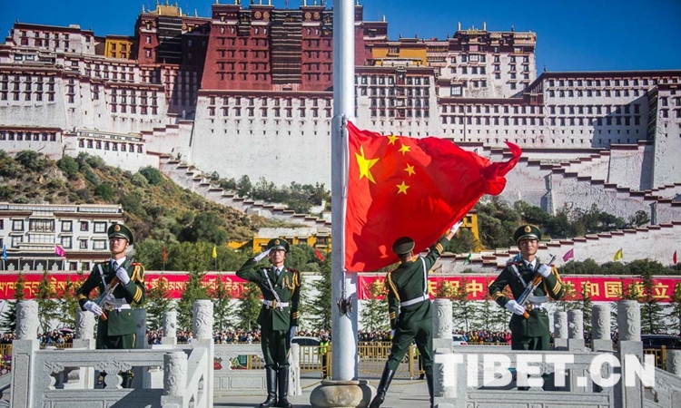 上午10時(shí),伴隨著《義勇軍進(jìn)行曲》,五星紅旗在各族群眾的齊聲歌唱中緩緩升起。飄揚(yáng)的五星紅旗下,雪域高原一派生機(jī)盎然的景象。在中國(guó)共產(chǎn)黨的領(lǐng)導(dǎo)下,雪域高原的面貌日新月異,昂首闊步走在社會(huì)主義康莊大道上,處處呈現(xiàn)出經(jīng)濟(jì)發(fā)展、社會(huì)進(jìn)步、文化繁榮、民生改善、民族團(tuán)結(jié)、宗教和睦、人民安居樂(lè)業(yè)的喜人局面。