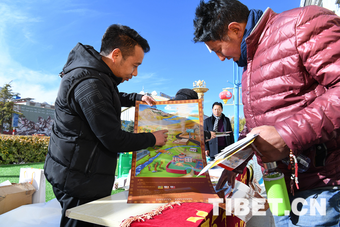 圖為西藏自治區(qū)氣象局工作人員向市民發(fā)放法治宣傳材料。