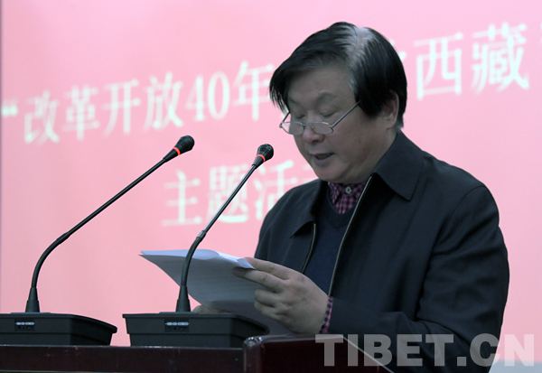 “四海共朝盛,高原展新顏?!?北京建藏援藏工作者協(xié)會(huì)副會(huì)長(zhǎng)陳正榮受范小建會(huì)長(zhǎng)委托,發(fā)表了熱情洋溢的致辭。他說(shuō),改革開(kāi)放40年來(lái),西藏各項(xiàng)事業(yè)取得了歷史性成就、發(fā)生了歷史性變革。習(xí)近平總書(shū)記高度重視西藏工作,提出了治國(guó)必治邊、治邊先穩(wěn)藏的重要戰(zhàn)略思想,確定了“十二五”3305億元和“十三五”6576億元中央支持西藏的一大批重點(diǎn)建設(shè)項(xiàng)目,西藏發(fā)生了翻天覆地的變化。“開(kāi)放發(fā)展的新西藏凝聚了歷屆中央集體的領(lǐng)導(dǎo)智慧,也凝聚著各族人民的奮斗,其中也有在座各位干部的心血和汗水?!?015年中央第六次西藏工作座談會(huì)上,習(xí)近平總書(shū)記曾說(shuō)“在高原上工作,最稀缺的是氧氣,最寶貴的是精神……” 范小建會(huì)長(zhǎng)希望,大家心連心一家親,并大力傳承發(fā)揚(yáng)老西藏精神。