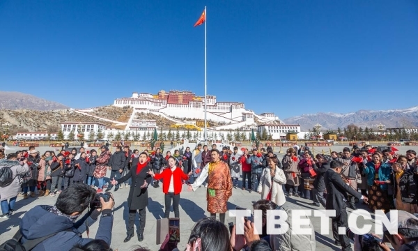 中國(guó)西藏網(wǎng)訊 2018年12月31日,年終歲末,西藏自治區(qū)拉薩市布達(dá)拉宮廣場(chǎng)上演了《我和我的祖國(guó)》快閃活動(dòng)。來自西藏的高校青年學(xué)生和市民群眾向祖國(guó)深情告白,用快閃的方式慶祝新中國(guó)成立70周年。