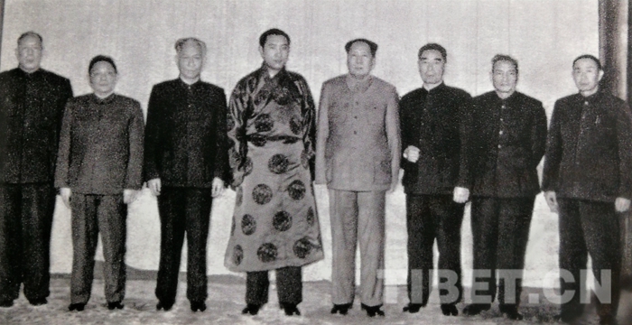 圖為1961年1月23日,毛澤東主席和中央領(lǐng)導(dǎo)接見十世班禪時(shí)的合影。圖中左起:李維漢、鄧小平、劉少奇、十世班禪、毛澤東、周恩來、陳云、張經(jīng)武。(中國(guó)西藏網(wǎng) 記者/孔夏 圖片翻拍自由中共黨史出版社出版的書籍《張經(jīng)武與西藏解放事業(yè)》)