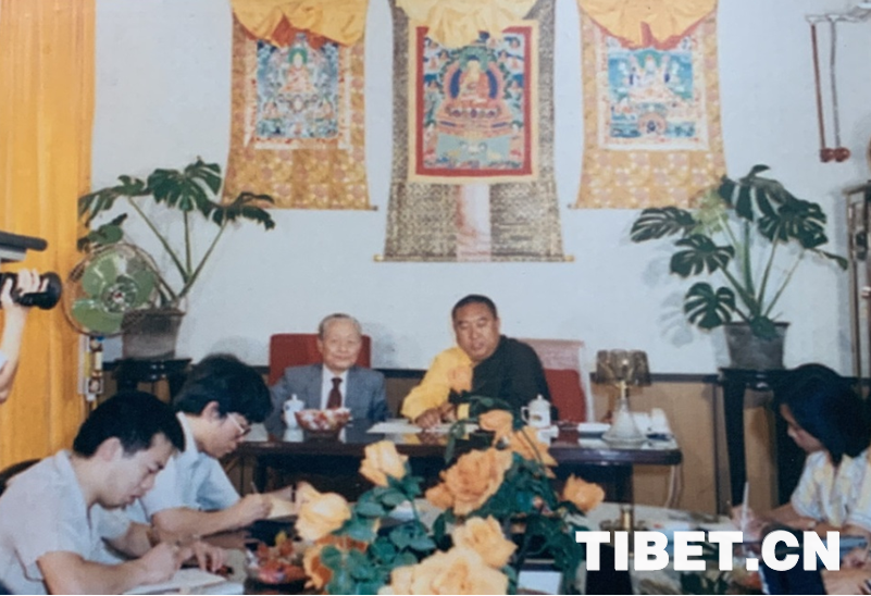 圖為1987年,十世班禪和趙樸初在中國(guó)藏語(yǔ)系高級(jí)佛學(xué)院成立儀式新聞發(fā)布會(huì)上接受媒體采訪。