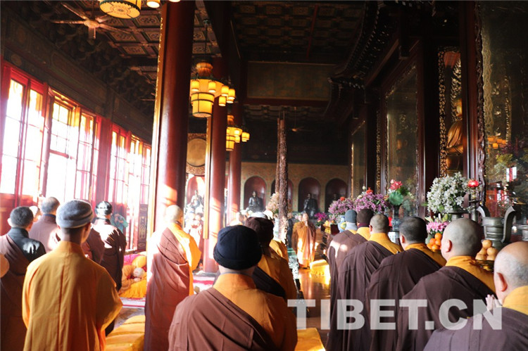 中國西藏網(wǎng)訊 今年適逢中國佛教協(xié)會名譽(yù)會長十世班禪大師圓寂30周年,1月28日上午9時,中國佛教協(xié)會及在京直屬寺院法師、工作人員、首都善信居士齊聚北京廣濟(jì)寺,隆重舉行紀(jì)念十世班禪大師圓寂30周年法會,深切緬懷十世班禪大師。法會禮請中國佛教協(xié)會演覺副會長、宗性副會長、祜巴等傣副會長主法,宏度副秘書長主持紀(jì)念儀式。三位法師拈香主法,帶領(lǐng)僧眾莊重誦經(jīng),圓滿完成法會儀軌。