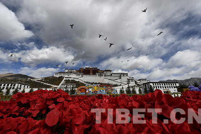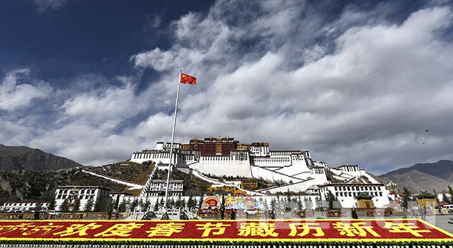 拉薩市園林局負(fù)責(zé)人介紹,3000多盆仿真花卉和4萬(wàn)余束紅黃兩色的絹花用在布達(dá)拉宮廣場(chǎng)中心位置進(jìn)行地面裝飾,營(yíng)造春節(jié)、藏歷新年的濃厚氛圍。
