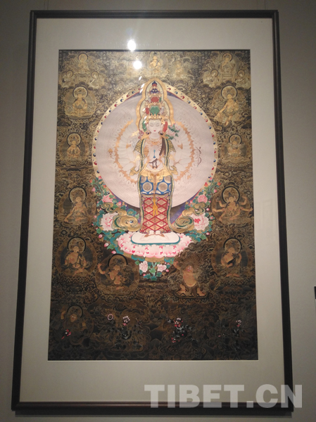 圖為展覽上展出的唐卡——千手千眼觀音菩薩唐卡。攝影:孫健