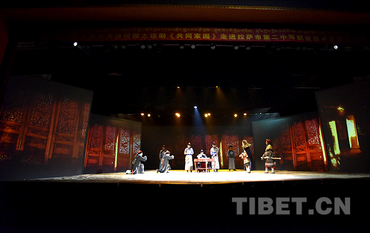 圖為話劇《共同家園》在拉薩市第二中等職業(yè)技術(shù)學(xué)院的專場(chǎng)演出圓滿落幕。