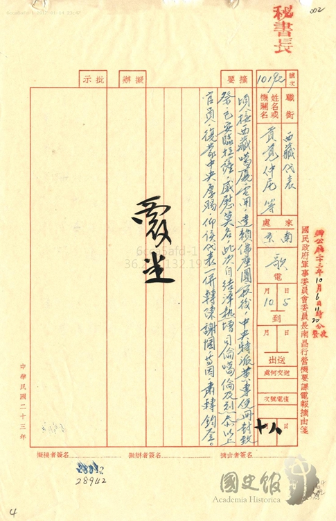 圖為貢覺仲尼轉(zhuǎn)西藏地方給中央政府的電報