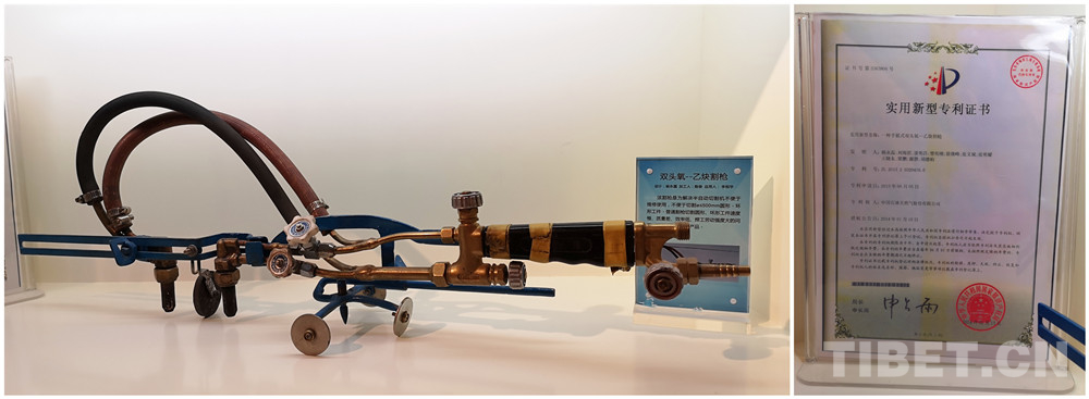 圖為楊永磊設計的雙頭氧-乙炔割槍,解決了普通割槍切割圓形、環(huán)形工件速度慢、質量差、效率低、焊工勞動強度大的問題 攝影:李元梅