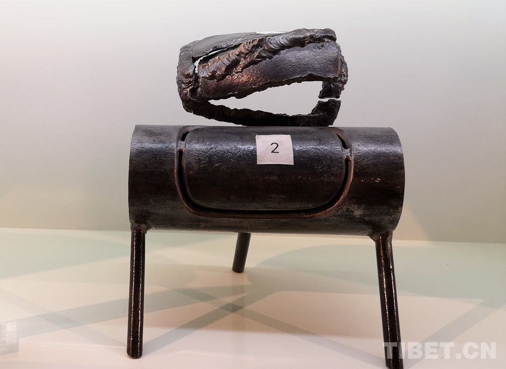 圖為楊永磊設計的氬氣隨機凈化器,使用時安裝在焊槍與減壓器之間,氬氣通過將水分及雜質吸附,從而提高氬氣純度,保證焊接質量 攝影:李元梅