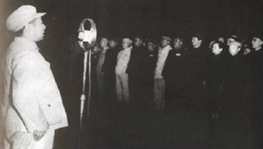 圖為參加中國(guó)人民政治協(xié)商會(huì)議第一屆全體會(huì)議的代表在天安門廣場(chǎng)舉行“人民英雄紀(jì)念碑”奠基典禮,周恩來代表主席團(tuán)在奠基儀式上致詞 圖片來源:人民網(wǎng)