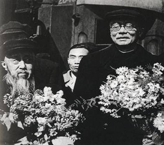 1951年4月6日至5月29日,林伯渠、沈鈞儒分任中蘇友好協(xié)會(huì)赴蘇參加“五一”節(jié)觀禮代表團(tuán)正、副團(tuán)長(zhǎng),率團(tuán)對(duì)蘇聯(lián)進(jìn)行參觀訪問。圖為代表團(tuán)在莫斯科車站受到熱烈歡迎。前排左為沈鈞儒,右為林伯渠 圖片來源:人民網(wǎng)