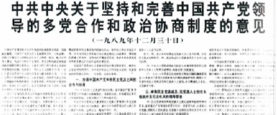 圖為1989年12月30日,中共中央制定《中共中央關(guān)于堅(jiān)持和完善中國共產(chǎn)黨領(lǐng)導(dǎo)的多黨合作和政治協(xié)商制度的意見》,使這一制度進(jìn)一步規(guī)范化、制度化 圖片來源:人民網(wǎng)