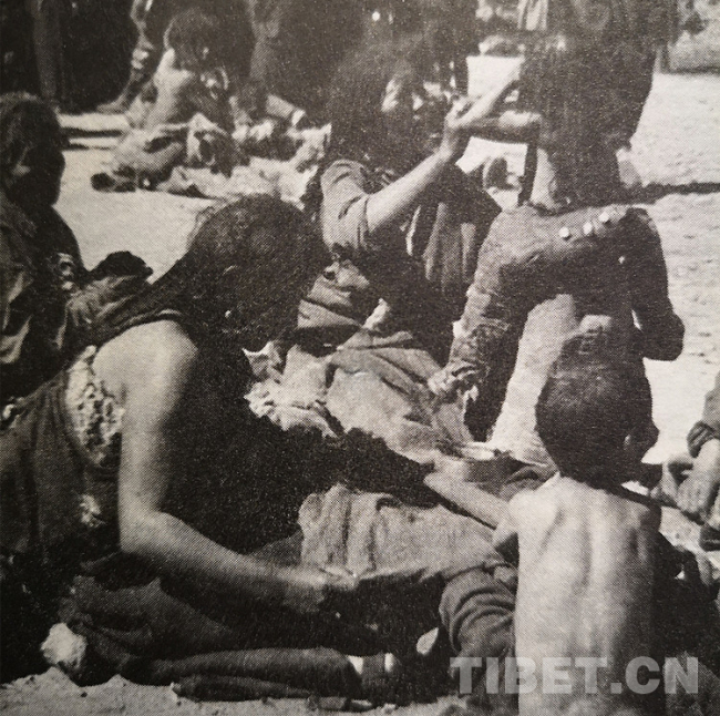 圖為20世紀(jì)50年代初西藏街頭乞討的婦女兒童 翻拍:李元梅