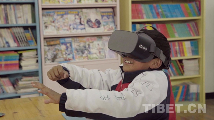 圖為拉薩市特殊教育學(xué)校學(xué)生正在體驗(yàn)VR技術(shù)