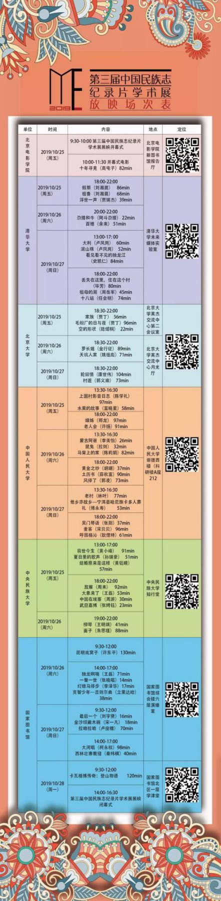 圖為“中國民族志紀錄片學(xué)術(shù)展”放映場次表