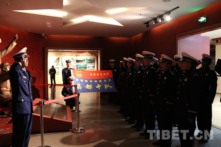圖為西藏昌都森林消防中隊(duì)在國(guó)家綜合性消防救援隊(duì)伍組建一周年之際,組織全體指戰(zhàn)員參觀昌都市博物館并開展重溫隊(duì)伍誓詞活動(dòng)