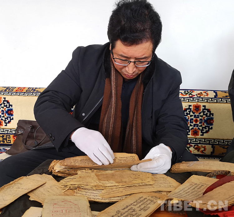 圖為洛賽在甘肅省甘南藏族自治州舟曲縣村民家搜集古藏文經(jīng)卷 圖片由洛賽提供