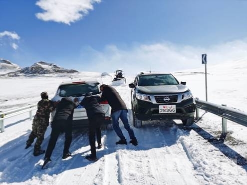 中國(guó)西藏網(wǎng)訊 12月14日凌晨,西藏自治區(qū)阿里地區(qū)普降暴雪,致新藏線馬攸木拉段路面積雪15厘米,風(fēng)積雪達(dá)40厘米,造成過往車輛受阻、人員滯留。
