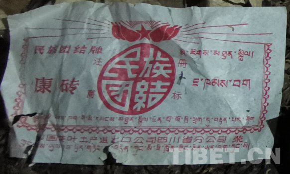 圖為西藏自治區(qū)阿里地區(qū)普蘭縣科迦村居民家中保存的滎經(jīng)生產(chǎn)的“民族團(tuán)結(jié)牌”康磚標(biāo)識(shí) 攝影:趙國棟