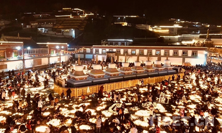 藏歷10月25日是藏傳佛教格魯派創(chuàng)始人宗喀巴大師圓寂的日子,為了紀念這位杰出的宗教領袖,西藏和四省藏區(qū)各格魯派寺廟會舉行誦經、磕頭,燈供儀式等隆重的祭祀活動。在以前,沒到這天晚上,許多寺院和信徒家的屋頂和窗臺上都要點亮無數(shù)盞酥油燈。在佛塔周圍、殿堂屋頂,窗臺、室內佛堂、佛龕、供桌等,凡能點燈的臺階上都要點一盞酥油供燈,然后虔誠誦經,紀念宗喀巴大師。