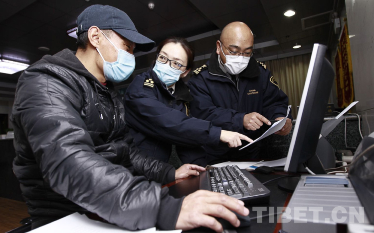 圖為拉薩海關(guān)關(guān)員指導(dǎo)辦理海關(guān)相關(guān)手續(xù) 圖片由拉薩海關(guān)提供