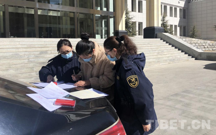 圖為拉薩海關(guān)關(guān)員實地指導(dǎo)辦理相關(guān)手續(xù) 圖片由拉薩海關(guān)提供