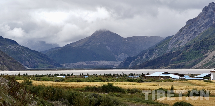 經(jīng)318國(guó)道到然烏湖后,一條岔道出現(xiàn)在南邊,路牌上寫著“察隅”。然烏湖在我印象中是碧藍(lán)色的,這次卻因?yàn)檫B日降雨,眼前這個(gè)堰塞湖變成了水泥色。但是湖面開闊靜謐,湖邊的村子里一塊塊金黃色的青稞田,點(diǎn)綴著民房,也別有一番魅力。