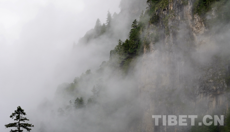 上午10點(diǎn),我們正式出發(fā),回到桑久鄉(xiāng)那個(gè)岔路口,沿著一條不寬的沙石路一路攀升。海拔從縣城的2360米上升到3000米以上,氣溫驟降,山路上松林密布,霧氣繚繞。路上偶爾能見到一輛摩托車,大多時(shí)候我們的車前車后竟無一人一車。在這個(gè)每平方公里只有一個(gè)人、森林覆蓋率達(dá)到60%的縣,如若孤身行進(jìn)在路上,眼前是變幻的霧景,山脊上點(diǎn)綴著松樹,真是“橫看成嶺側(cè)成峰”,倒也無比愜意。