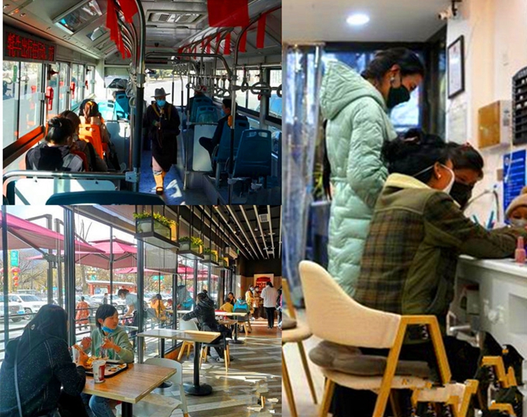 隨著西藏自治區(qū)連續(xù)50多天無新冠肺炎新增確診或疑似病例。近日,日喀則市發(fā)文明確,取消居家隔離、集中隔離,同時,各餐飲企業(yè)和個體餐飲門店恢復(fù)堂食,經(jīng)濟社會逐步趨于正常。圖為市民生活如常,戴口罩坐公交、在餐飲店堂食、在美甲店美甲 圖片來源:中國新聞網(wǎng)