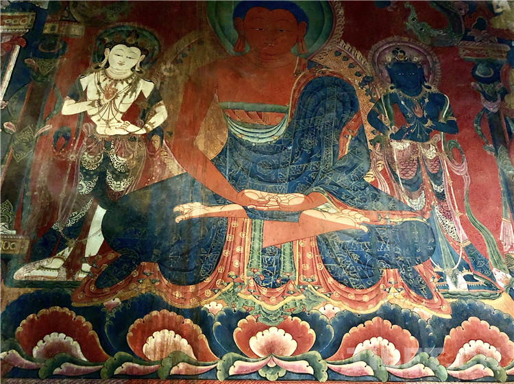 位于札達(dá)縣城西北的托林寺,建于公元996年,是阿里地區(qū)最古老的佛教寺院。它在整個藏傳佛教史中扮演了承上啟下的重要角色。托林寺原有三座大殿和近十座中小殿堂,以及僧舍、經(jīng)堂、佛塔等建筑,現(xiàn)保存較好的只有三大殿和托林塔,內(nèi)中的壁畫精美絕倫,為整個“古格壁畫”的重要構(gòu)成部分。