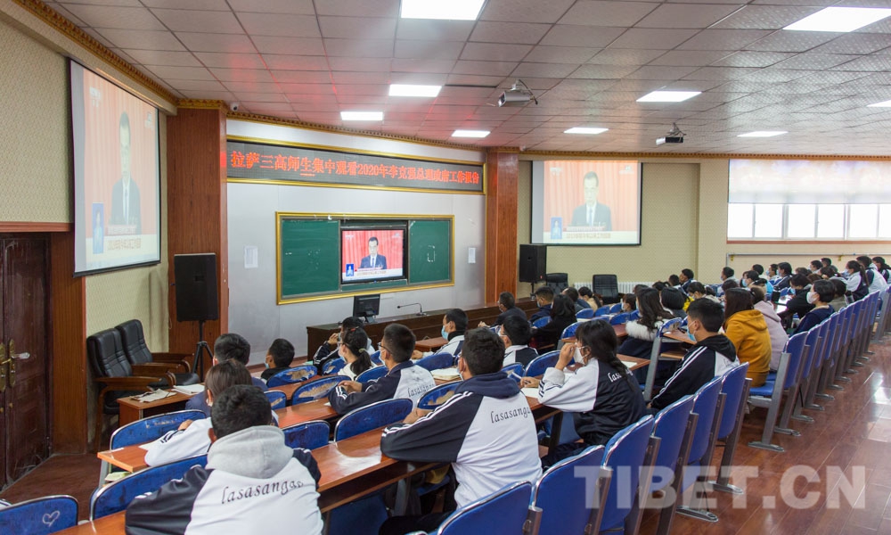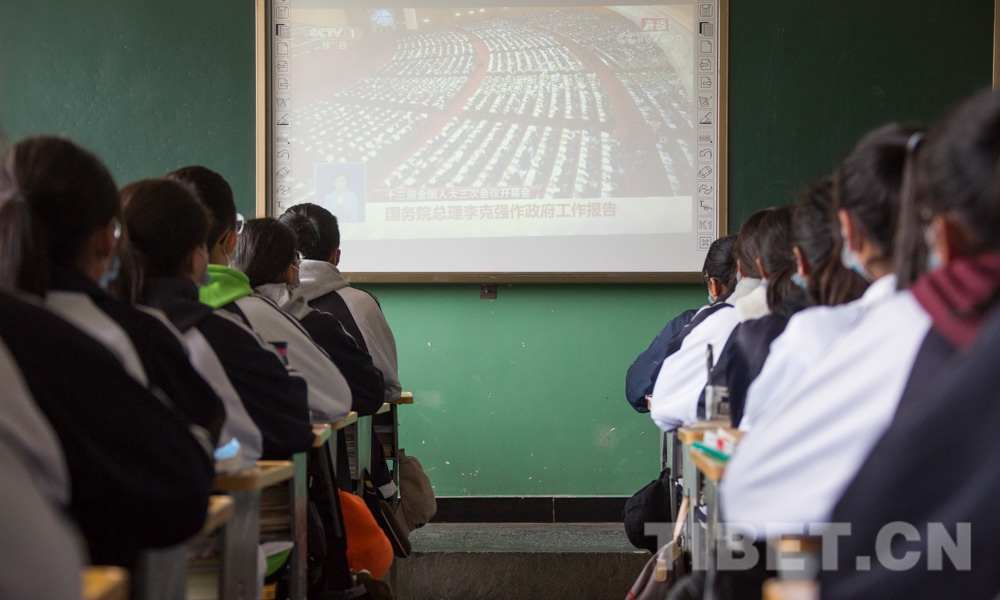 中國西藏網(wǎng)訊 5月22日,第十三屆全國人民代表大會第三次會議22日上午在人民大會堂開幕。西藏自治區(qū)拉薩市第三高級中學(xué)的師生通過直播的方式觀看開幕式。
