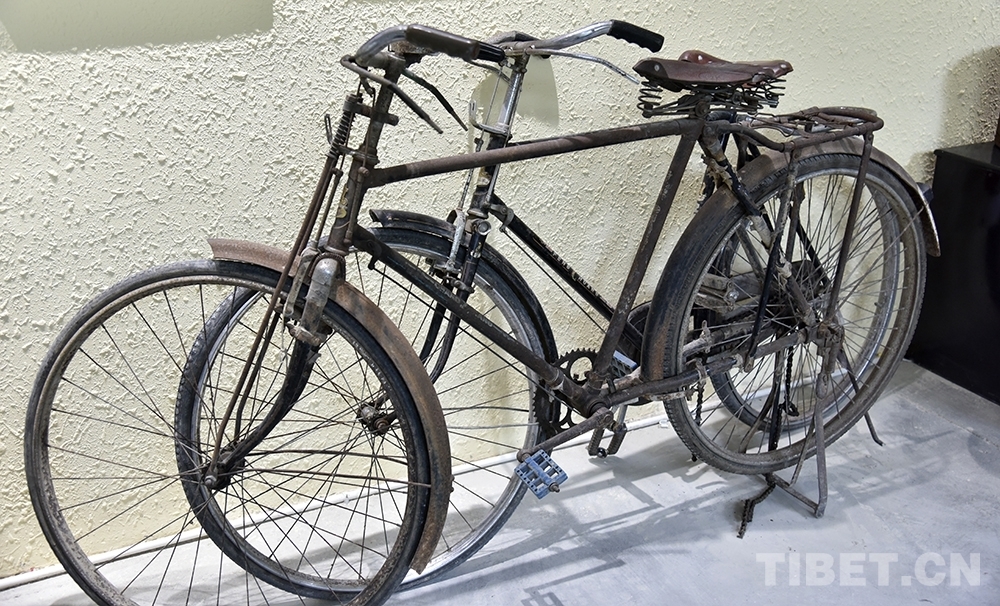 圖為林周農(nóng)場場部舊址里展示的自行車 攝影:王媛媛