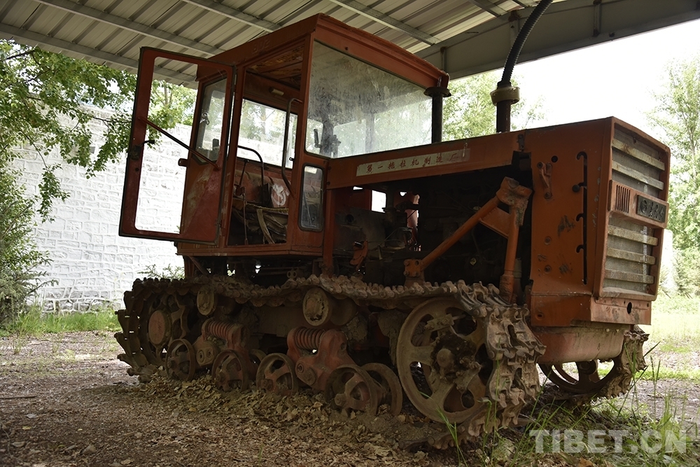 圖為林周農(nóng)場場部舊址里展示的拖拉機 攝影:王媛媛