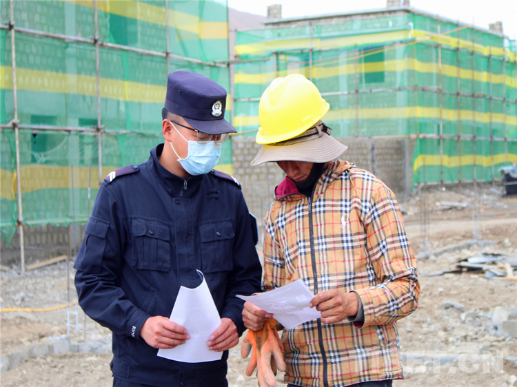圖為支隊“新警”正在工地對外來務(wù)工者宣傳普及邊境法規(guī)