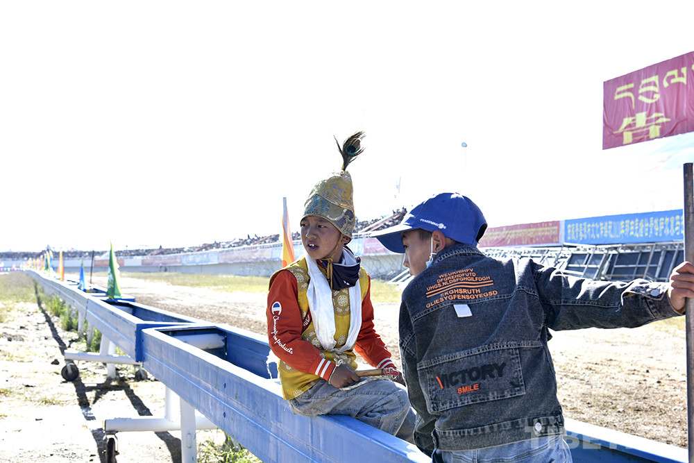 賽馬場(chǎng)上,看著同齡人在馬背上飛馳,拉巴桑珠不時(shí)給出建議:“要拽韁繩”“要打馬鞭”……他也在觀察同齡人駕馭馬匹的技巧,為自己的比賽做好準(zhǔn)備。