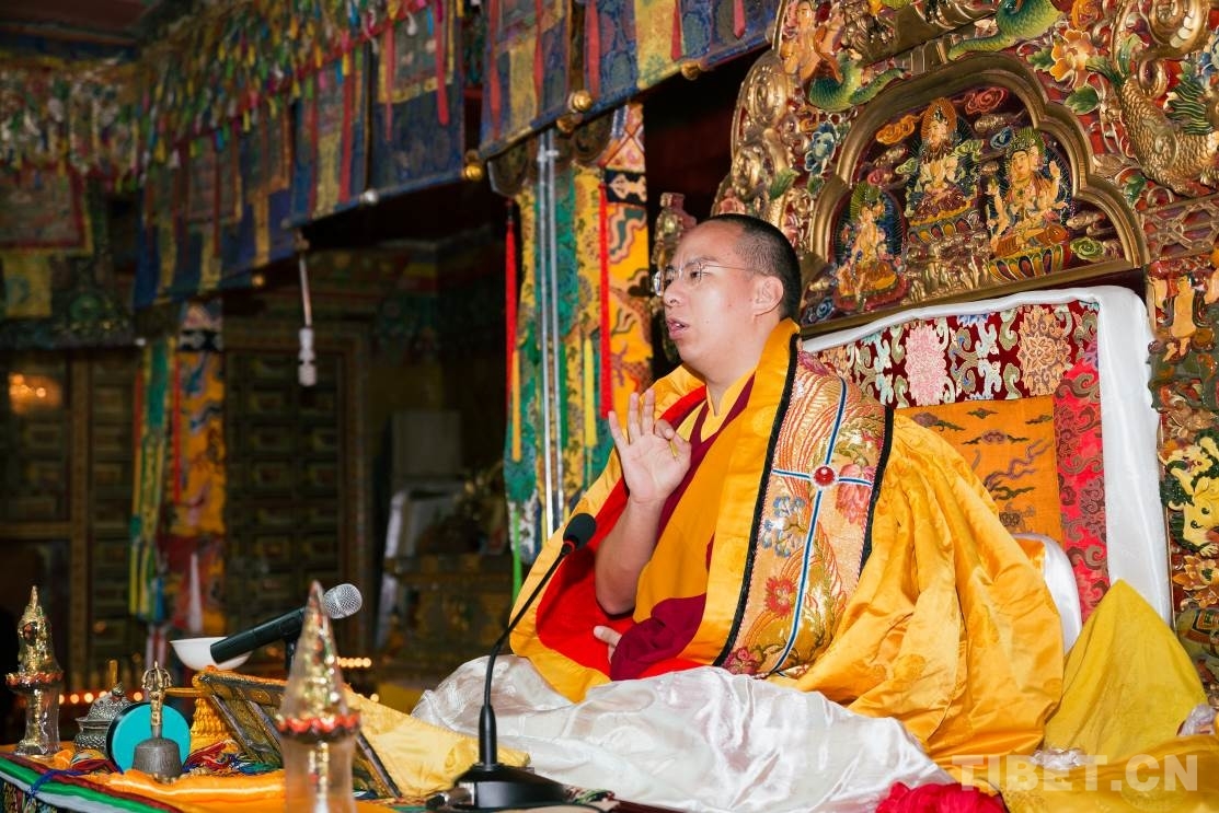 十一世班禪在達孜寺杜康殿為僧眾傳授《隨許皈依經(jīng)》和《菩提道矩論》 攝影:鄭朔