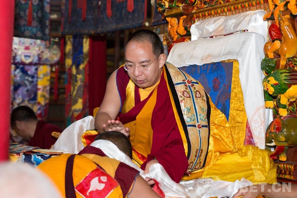 圖為十一世班禪在白嘎寺為僧眾摸頂 攝影:王淑
