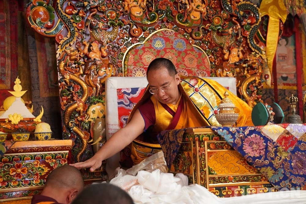 十一世班禪為達姆寺僧人摸頂 攝影:鄭朔