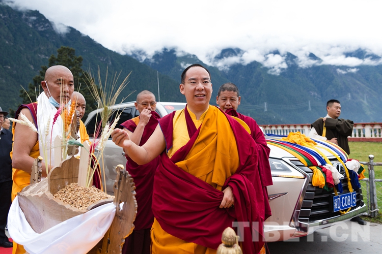 9月2日,山間云霧還未散去,寺院僧人早已整齊列隊(duì),高舉幡幢,手持香爐、法號(hào),恭迎全國(guó)政協(xié)常委、中國(guó)佛教協(xié)會(huì)副會(huì)長(zhǎng)、中國(guó)佛教協(xié)會(huì)西藏分會(huì)會(huì)長(zhǎng)班禪額爾德尼?確吉杰布的到來(lái)。