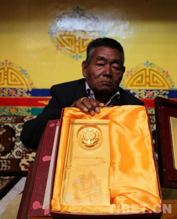 圖為次仁和他的國家級(jí)傳承人獎(jiǎng)杯